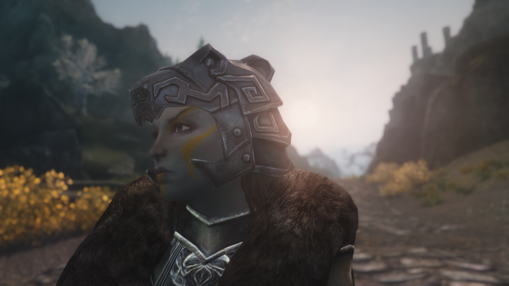 Nordic Carved also by CaBaL120. I know the Above is Jenassa, but bare with me. You can find these retextures in the Book of Silence. I am playing a male battle mage at the moment. He’s a Breton so slightly short and not that strong. When I need warrior backing me up I bring Lydia along. I have her modded to be tall even for a Nord. So she has a Brienne of Tarth thing going on.