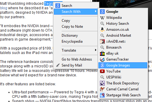 The top image is from Opera 12 and the bottom from Maxthon 4. As you can see Maxthon only allows you to search on what ever search engine you last used.